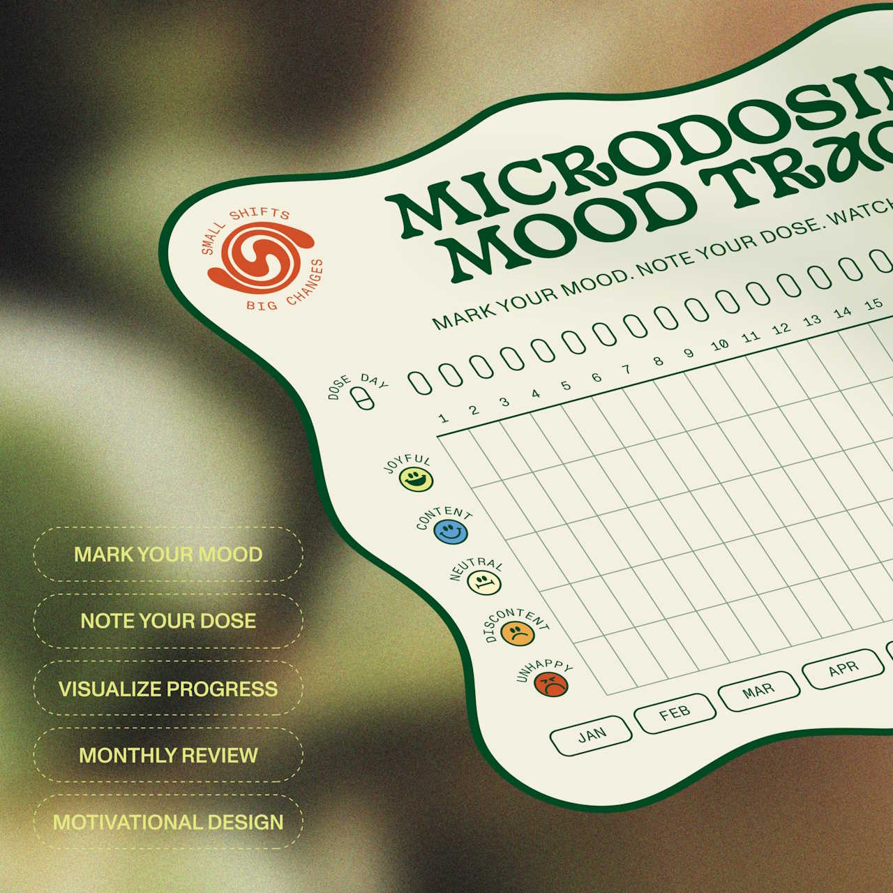 Research indicates that individuals who consistently track their moods can develop greater emotional awareness, enabling them to make more informed and impactful changes to their daily routines and behaviours. When paired with the mood-boosting, brain-rewiring magic of microdosing, your goals are as good as reached.